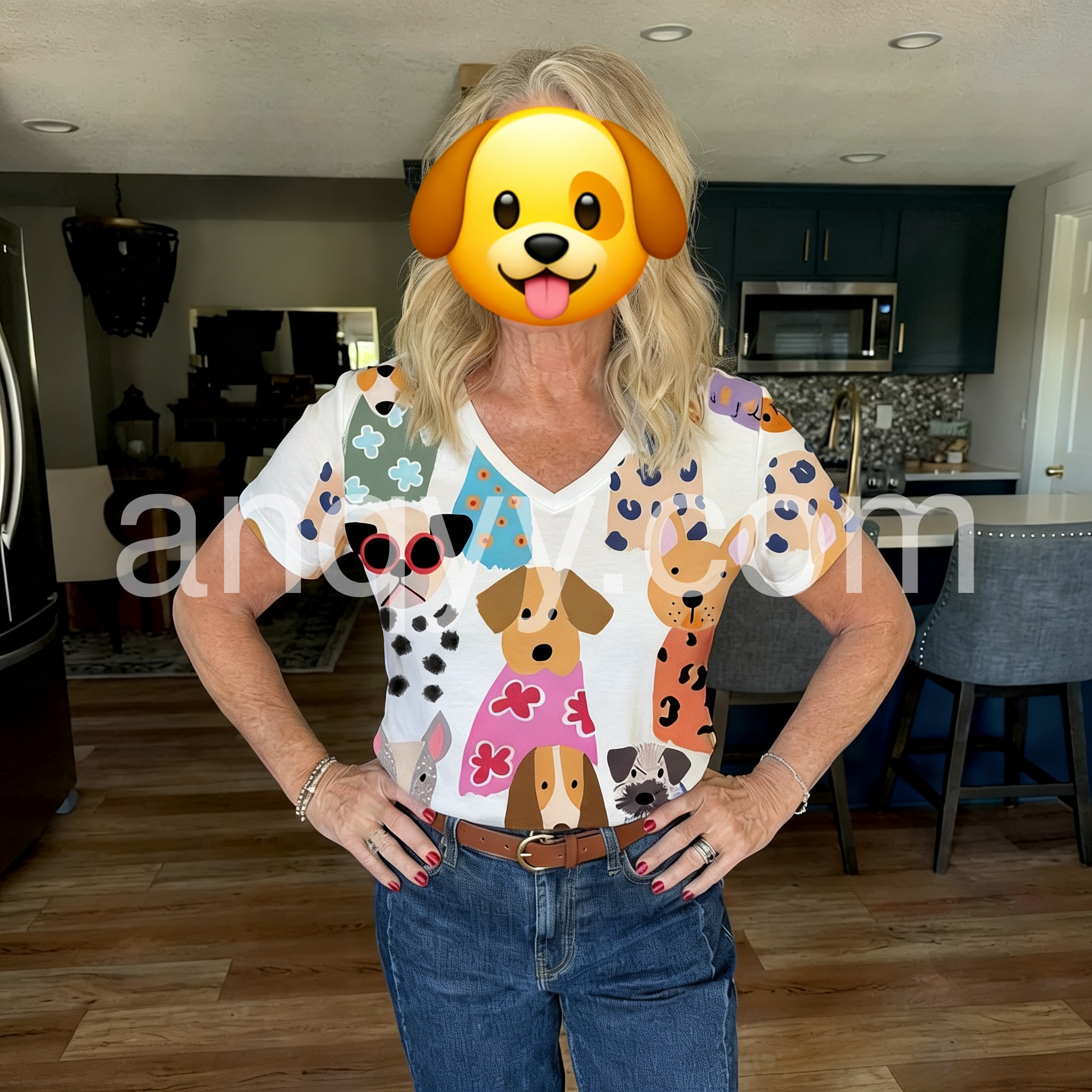 Style# 1544301Brighten your day with this Whimsical Dog Print Short Sleeve Top, a cheerful and eye-catching piece that turns heads with its playful, hand-drawn style canine illustrations. Featuring an adorable array of cartoon dogs in vibrant outfits—complete with sunglasses, floral dresses, and bold patterns—this top brings a joyful, artistic flair to any outfit. Crafted from lightweight, breathable fabric—likely cotton or linen blend—it’s perfect for warm weather and casual wear. The relaxed fit, short sleeves, and soft V-neckline offer ultimate comfort and effortless style, making it ideal for beach days, brunches, or weekend outings. Whether you're a dog lover or simply adore fun fashion, this top is a must-have statement piece that blends humor, creativity, and charm. Pair it with white jeans, denim shorts, or flowy pants for a look that's both flirty and full of personality. Inspired by the whimsical spirit of brands like Lulus, this top celebrates individuality and lighthearted fashion—perfect for those who love to express their fun side with every step.