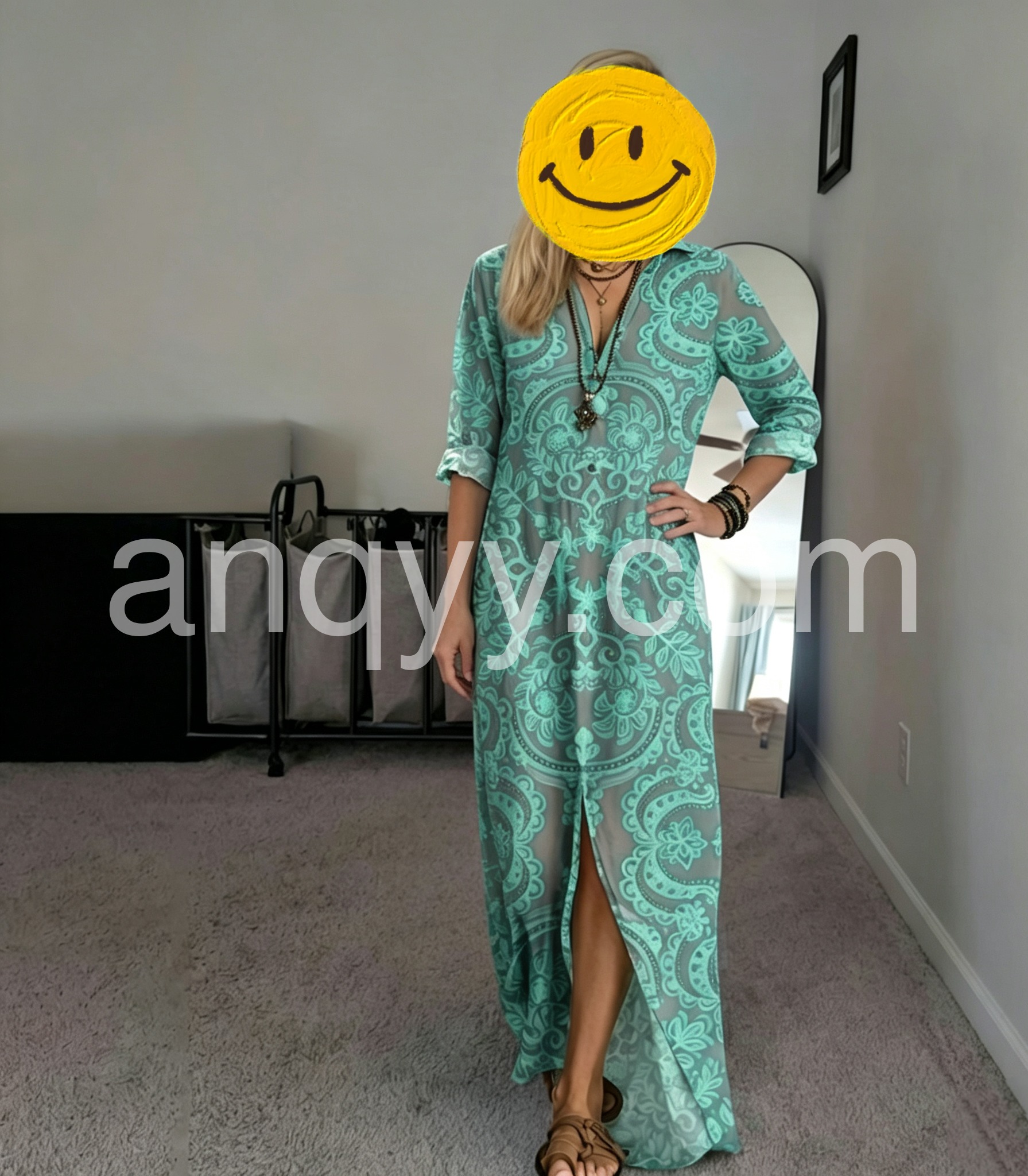 Hey besties, this boho maxi dress is the ULTIMATE vacation piece that fixes your "frumpy summer dress" pain point! Tired of dresses that don’t move with you? The flowy silhouette skims over curves, while the side slit solves the "walking restriction" issue.