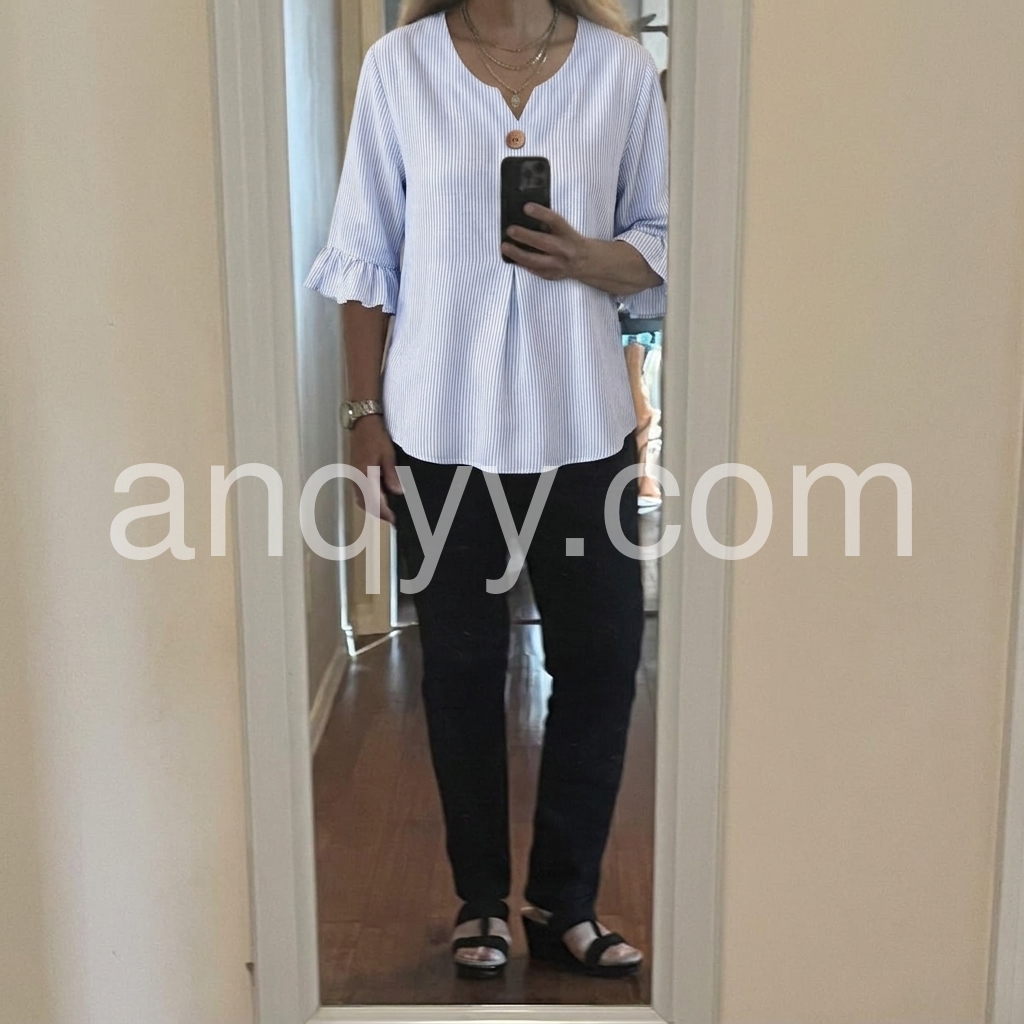 As a designer, I crafted this blouse to solve the common pain point of "too casual or too formal" daily tops. The notched V-neck flatters all necklines, while the ruffled cuffs add a feminine touch without being overly frilly.