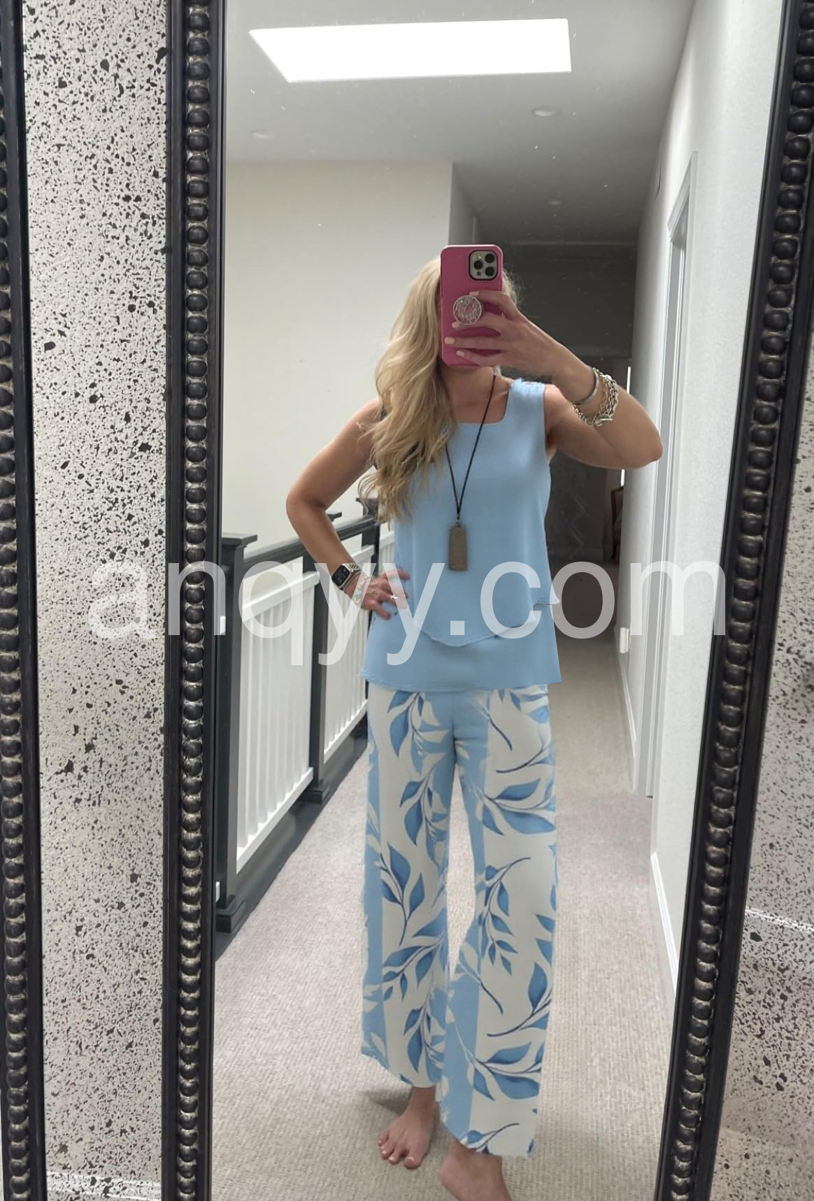 Get your summer style on point with this Blue Plant Print Square Neck Two Piece Set. Made with a stunning blue plant print design, this set features a square neck and is perfect for any warm day. Stay trendy and comfortable all day long with this must-have set.