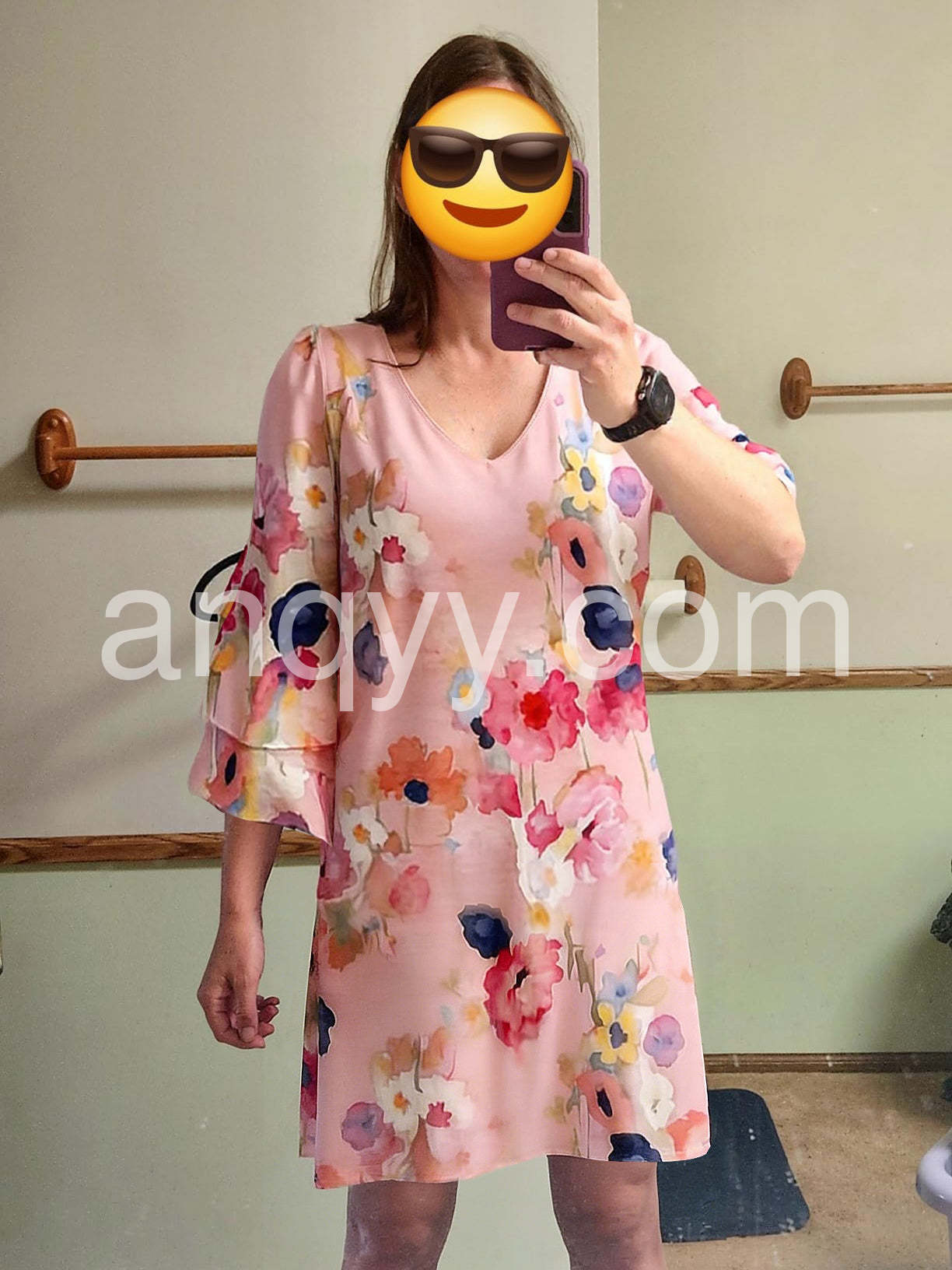 Style# 1544501Embrace soft romance and effortless style in this Pink Watercolor Floral 3/4 Sleeve Mini Dress , a dreamy mini dress that captures the beauty of blooming spring. Crafted from lightweight, flowing fabric—likely chiffon or rayon blend—this dress features a delicate watercolor-inspired floral print in vibrant shades of pink, coral, navy, yellow, and white, creating a painterly effect across the soft blush base. The flattering V-neckline adds a touch of elegance, while the short ruffle sleeves bring playful volume and feminine charm. A relaxed, A-line silhouette ensures comfort and ease, making it perfect for casual days, brunches, or warm-weather outings. Paired here with layered bracelets and a pearl necklace, it exudes boho-chic appeal. Ideal for beach trips, garden parties, or weekend strolls, this dress brings a sense of lightness, joy, and timeless femininity to your wardrobe. Let this floral mini dress turn every moment into a gentle celebration of color and style.