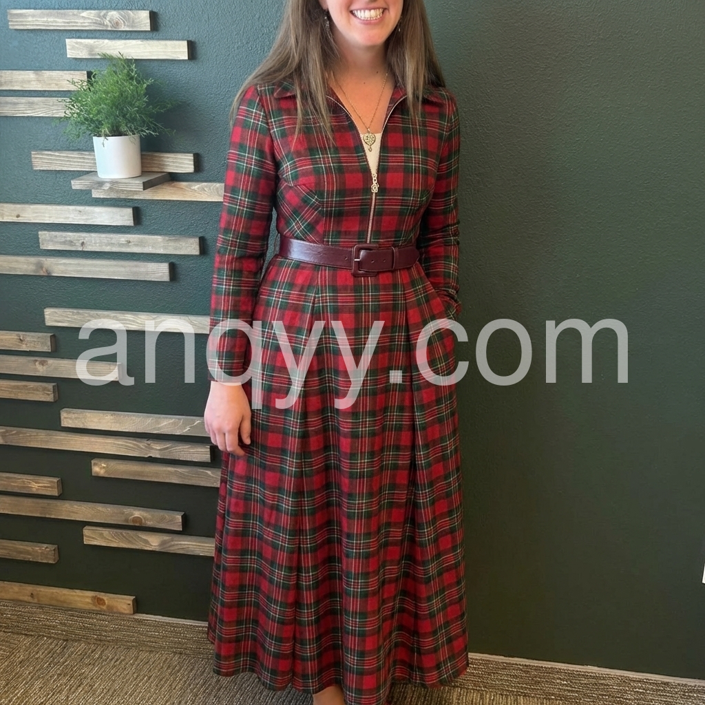 Elevate your wardrobe with this striking red plaid maxi dress, designed for those who appreciate timeless style with contemporary flair. The full-length silhouette offers sophisticated coverage, while the zip front closure provides effortless dressing and versatile styling options. Long sleeves deliver warmth and elegance, making this piece ideal for layering or wearing solo across seasons. The classic plaid pattern adds visual interest and pairs seamlessly with boots, sneakers, or heels depending on the occasion. Perfect for casual outings, professional settings, or weekend gatherings, this dress combines comfort with refined aesthetics for a polished everyday look.