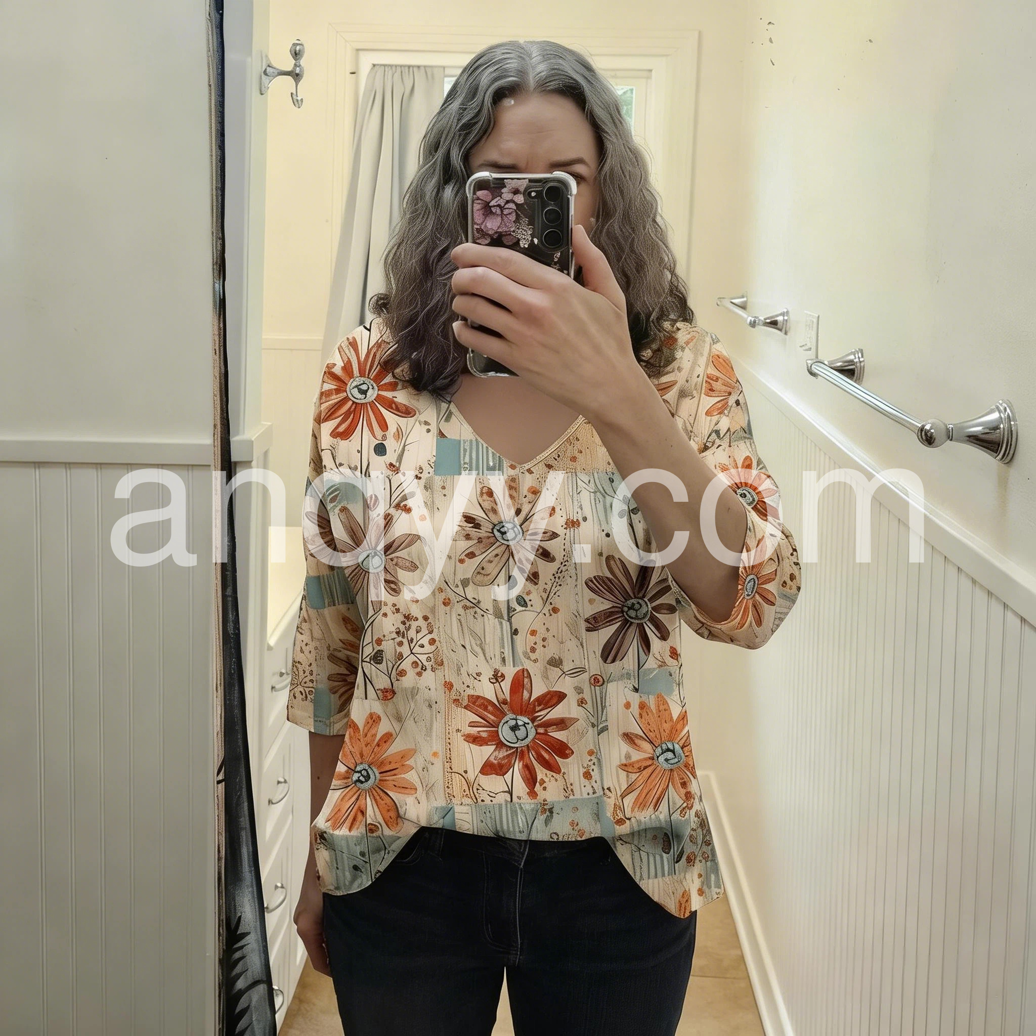 The relaxed V-neck fit and 3/4 sleeves ensure all-day comfort, perfect for elevating everyday outfits with timeless style.