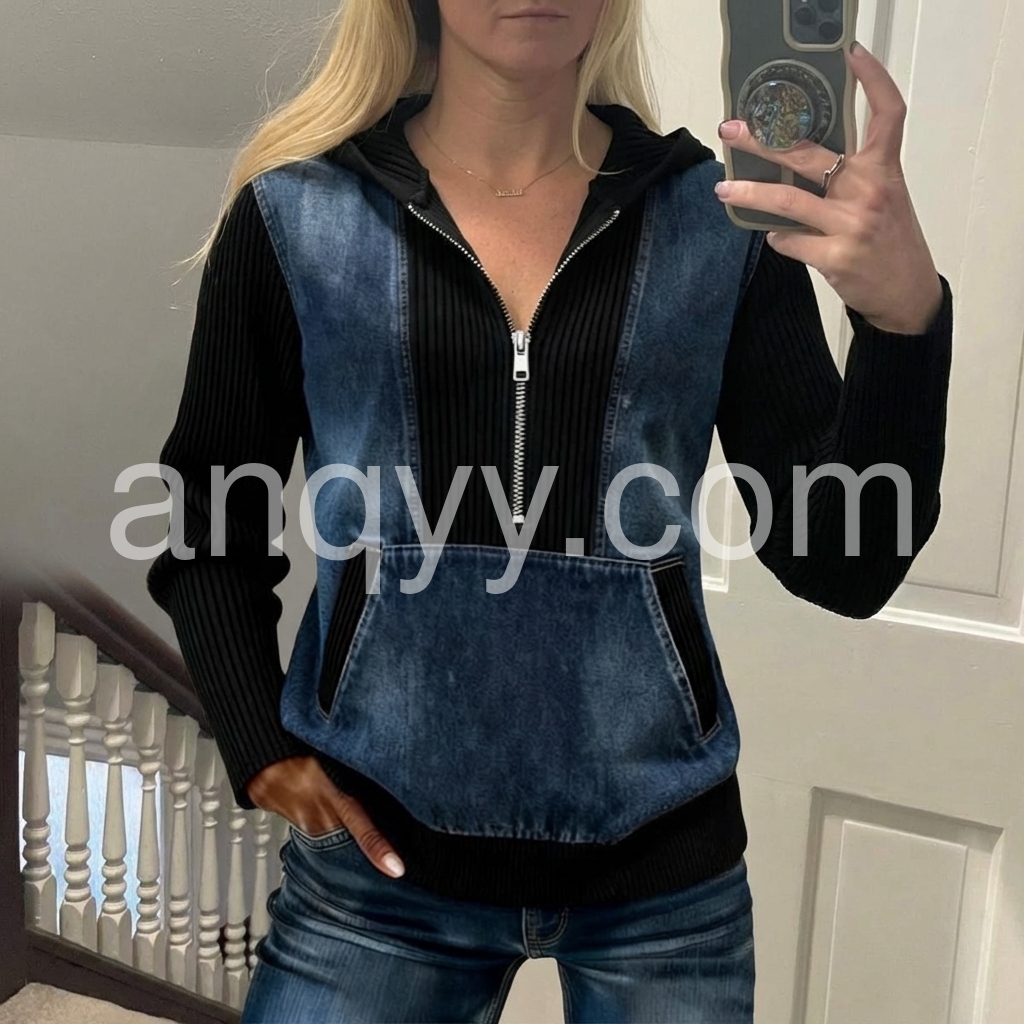 Cool Half Zip Kangaroo Pocket Denim Sweatshirt