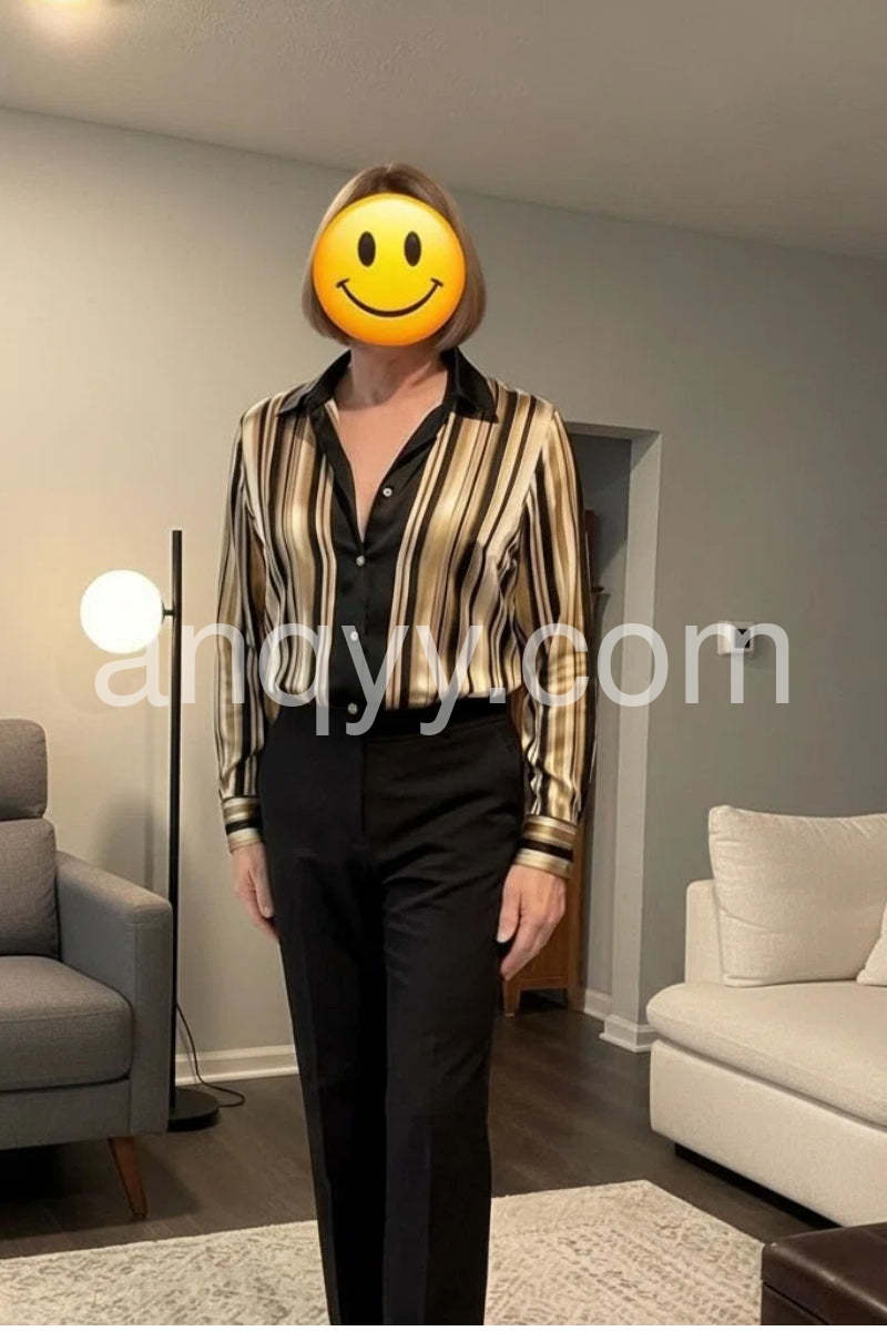 Elevate your wardrobe with this sophisticated striped satin blouse, crafted from luxurious fabric that drapes beautifully against the skin. The classic button-down silhouette offers timeless versatility, seamlessly transitioning from professional settings to evening occasions. Subtle stripes add visual interest without overwhelming your look, while the satin finish delivers an understated elegance. Perfect for layering or wearing solo, this piece pairs effortlessly with tailored trousers, skirts, or denim for a polished appearance that works season after season.