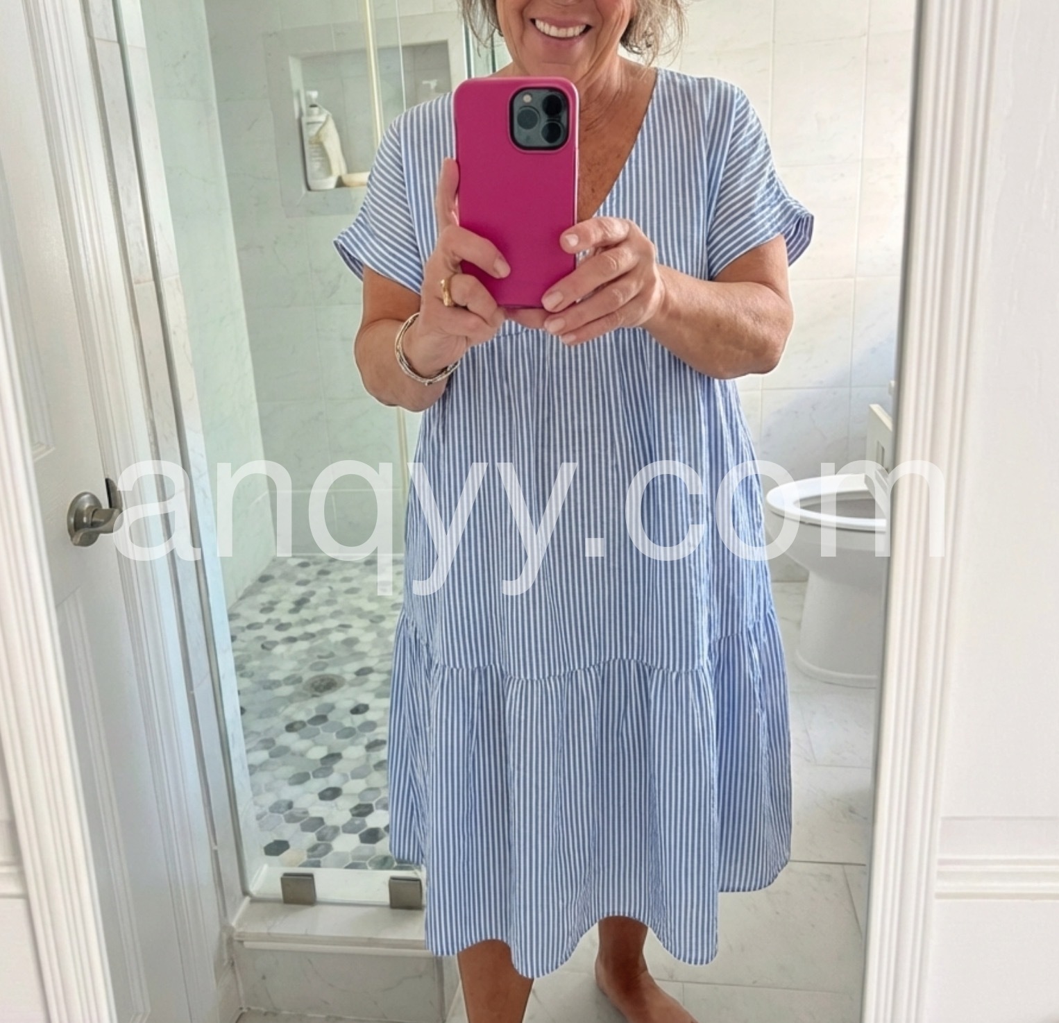 This Youthful Striped Print V-Neck Midi Dress is designed for the modern fashion-forward woman. Made with a flattering V-neckline and eye-catching striped print, this dress is versatile and perfect for any occasion. Its midi length adds a touch of elegance, while the youthful design adds a playful touch. Elevate your wardrobe with this must-have dress.