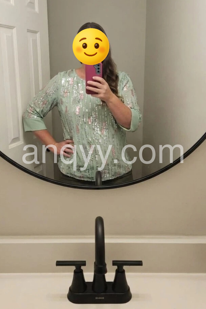 This top is absolutely stunning! The mint green color is so refreshing, and the sequins add just the right amount of sparkle without being overwhelming. Perfect for my upcoming holiday party. Fit is true to size.