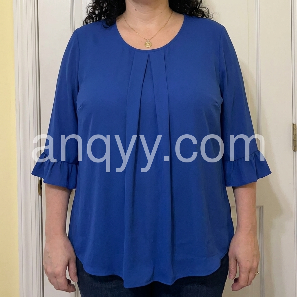 Elevate your everyday style with this gorgeous royal blue blouse. It features delicate front pleats and flirty ruffled cuffs, adding a touch of elegance to your look.
