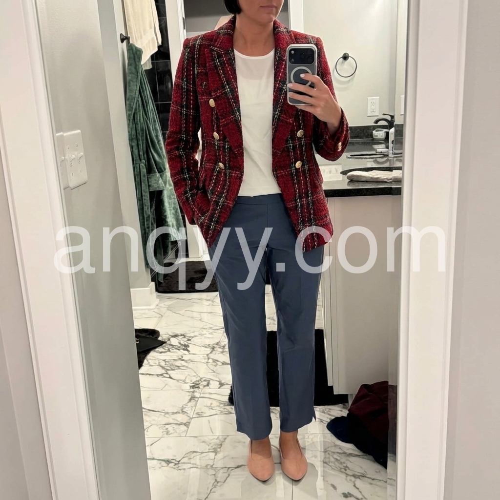 Upgrade your wardrobe with this Red Long Sleeve Check Blazer. This stylish blazer features a bold red color and a classic check print, perfect for making a statement. Crafted with long sleeves, it offers comfort and style all day long. Elevate your look with this versatile piece.