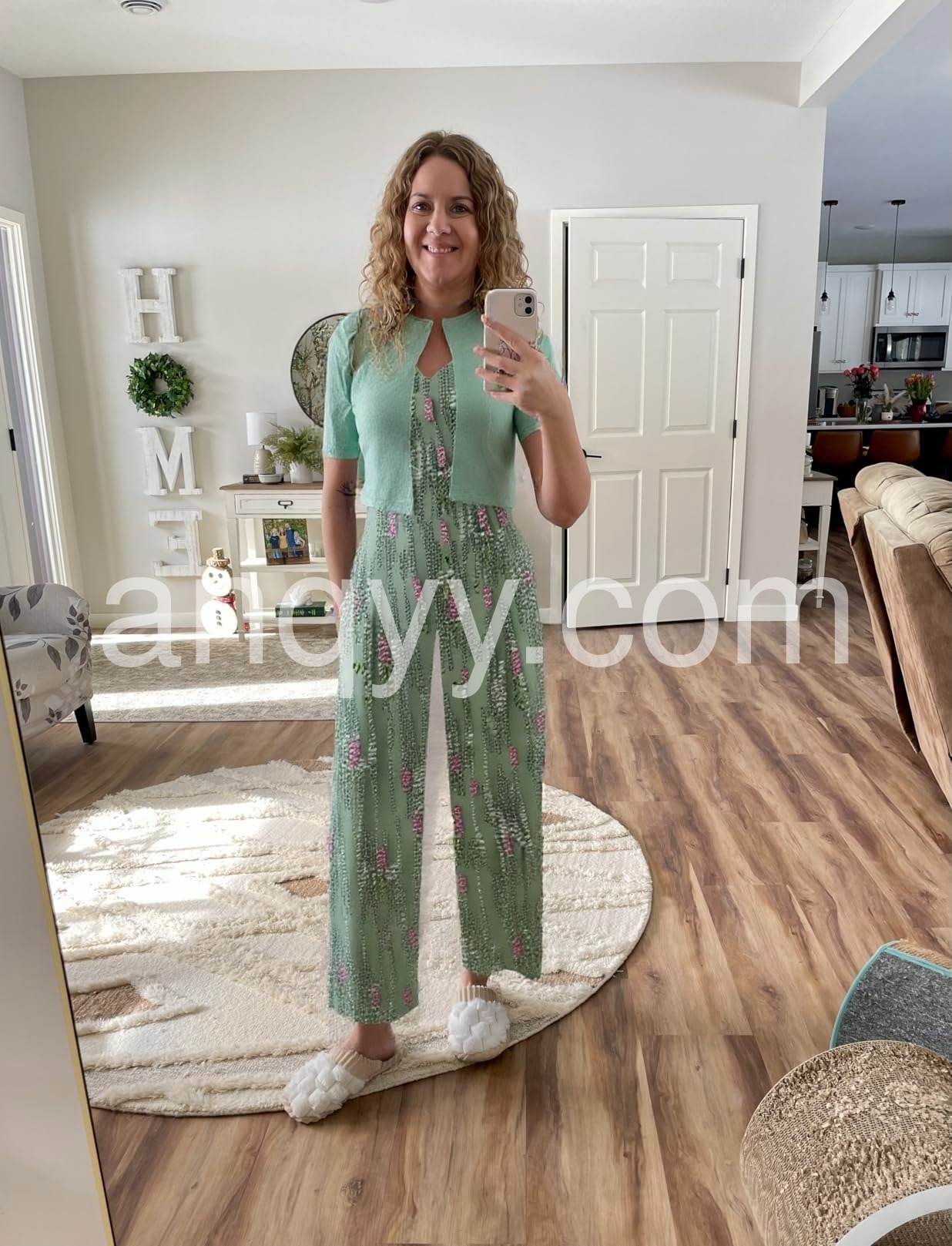 Discover the perfect combination of style and comfort with our Youthful V-Neck Green Jumpsuit with Jacket. Featuring a flattering v-neckline and a vibrant green color, this jumpsuit is perfect for any occasion. The included jacket adds versatility and warmth, making it a must-have for your wardrobe. Made with high-quality materials, you'll feel both confident and comfortable wearing this stylish outfit.
