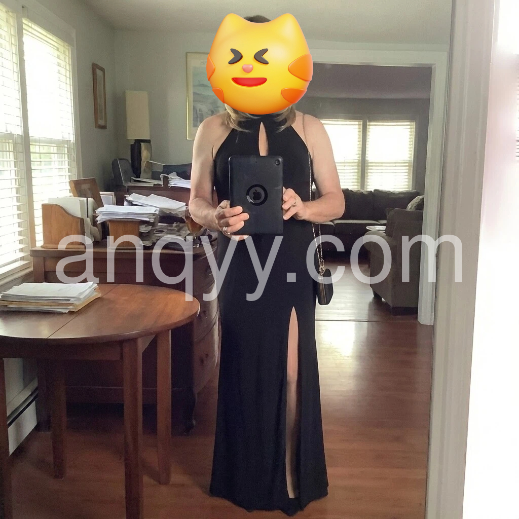This black halter neck maxi dress is absolutely stunning! The keyhole cutout and high slit are so elegant and sexy without being over the top, and the fabric has a beautiful stretch that hugs my curves perfectly. I wore it to a formal gala and felt like a million dollars, getting compliments all night long.