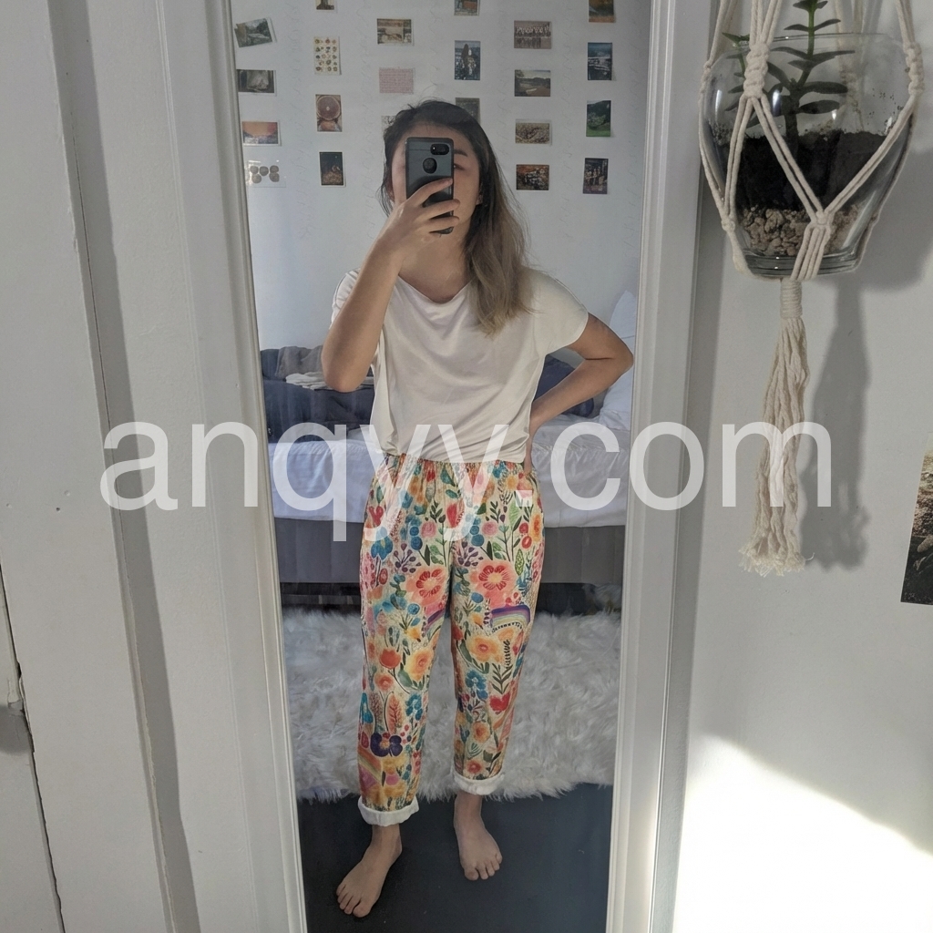 These loose-fit harem pants feature a vibrant floral pattern with rainbow accents. Elastic waistband and cuffed ankles for comfort. Lightweight fabric perfect for warm weather. Ideal for beach days or casual outings. Playful and effortlessly stylish.