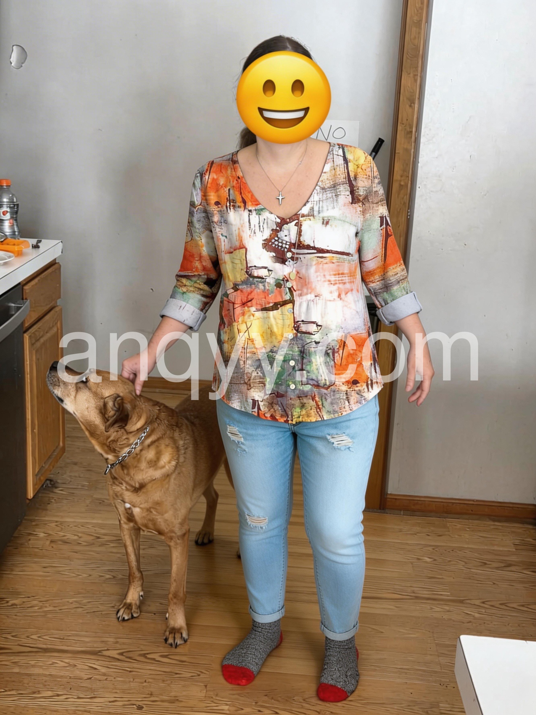 Style# 1544471Make a bold fashion statement with this Chic Abstract Watercolor Print Top, a one-of-a-kind top that turns wearable art into everyday elegance. Crafted from soft, lightweight fabric—likely cotton or rayon blend—this blouse features a vibrant, painterly design inspired by watercolor strokes and abstract expressionism. The print blends warm tones of orange, rust, mustard, teal, and cream, creating a dynamic and artistic look that’s both eye-catching and sophisticated. Styled here with distressed denim and layered jewelry, it’s ideal for weekend outings, creative gatherings, or adding a burst of personality to your daily wardrobe. Whether you're heading to brunch or exploring the city, let this abstract-print top elevate your style with creativity, comfort, and boho flair.