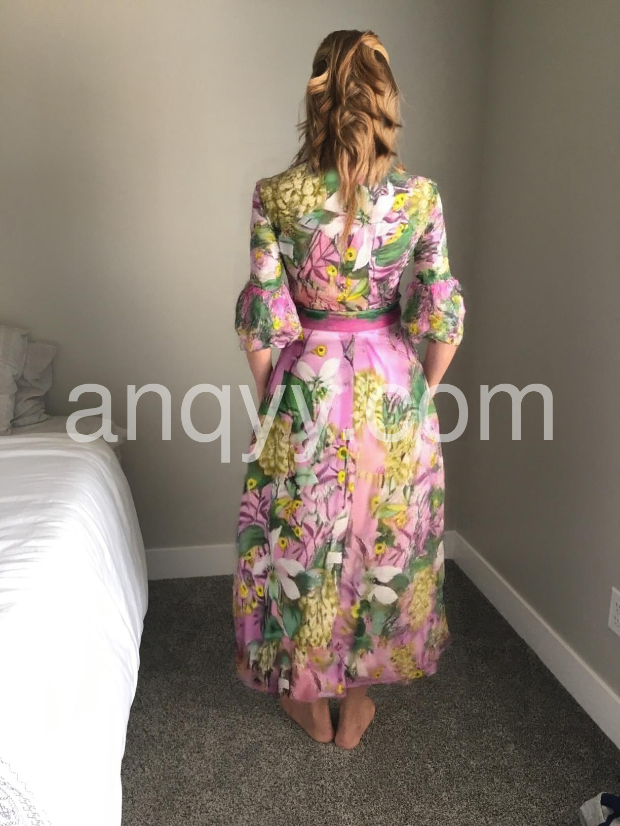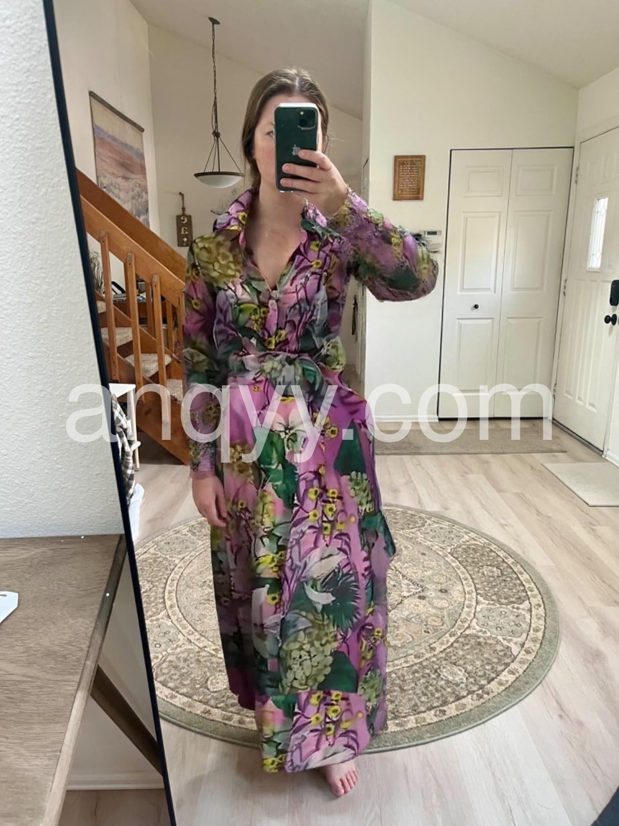 I love the vibrant colors and intricate floral pattern of this dress! It's perfect for a spring day out.