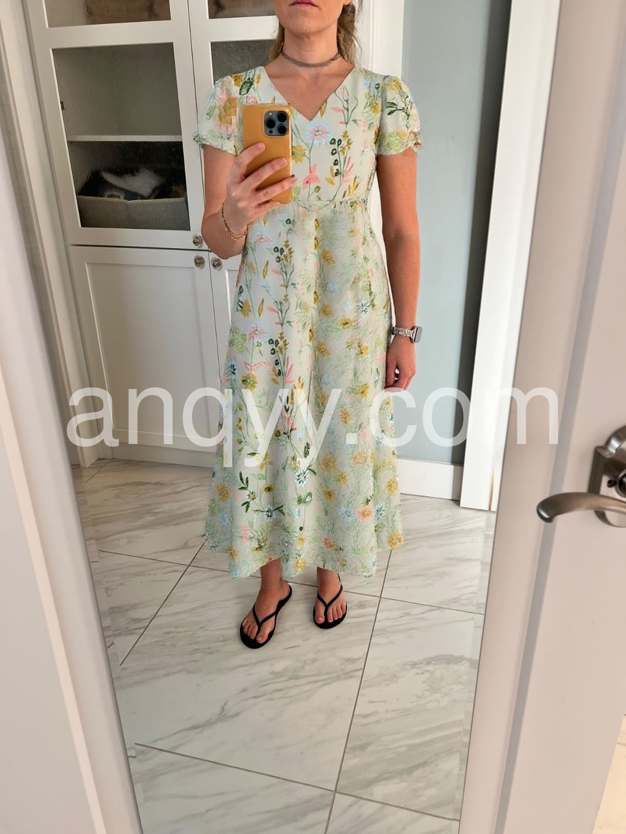 Distinctive V-Neck Short Sleeve Maxi Dress